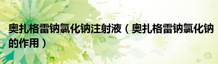 大家好,linda来为大家解答以上的问题。奥扎格雷钠氯化钠注射液,奥扎格雷钠氯化钠的作用很多人还不知道,现在让我们一起来看看吧!