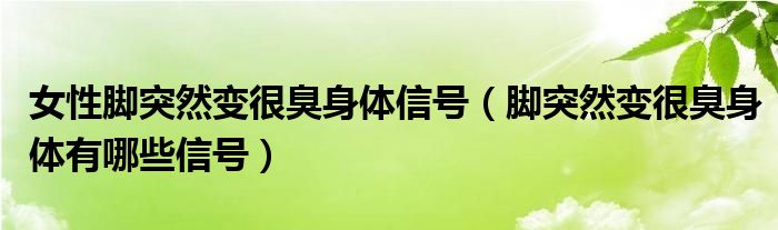 大家好,linda来为大家解答以上的问题。女性脚突然变很臭身体信号,脚突然变很臭身体有哪些信号很多人还不知道,现在让我们一起来看看吧!