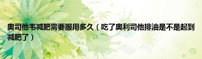 大家好,linda来为大家解答以上的问题。奥司他韦减肥需要服用多久,吃了奥利司他排油是不是起到减肥了很多人还不知道,现在让我们一起来看看吧!