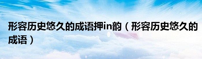 大家好,小晋来为大家解答以下问题,关于形容历史悠久的成语押in韵,形容历史悠久的成语很多人还不知道,今天让我们一起来看看吧!