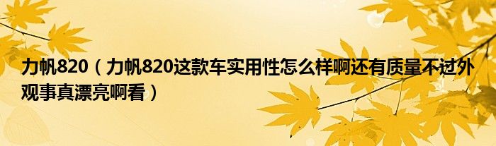 力帆820(力帆820这款车实用性怎么样啊还有质量不过外观事真漂亮啊看)