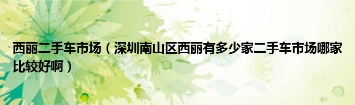 1,深圳南山区西丽有多少家二手车市场哪家比较好啊 :龙珠大道新屋村附近有家 一通二手车市场 比较大,别的就不清楚了。