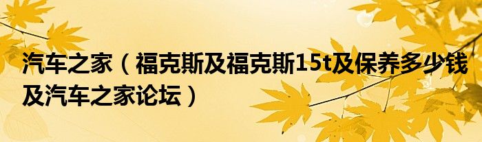 大家好,小常来为大家解答以下问题,对于汽车之家,福克斯及福克斯15t及保养多少钱及汽车之家论坛很多人还不知道,今天让我们一起来看看吧!