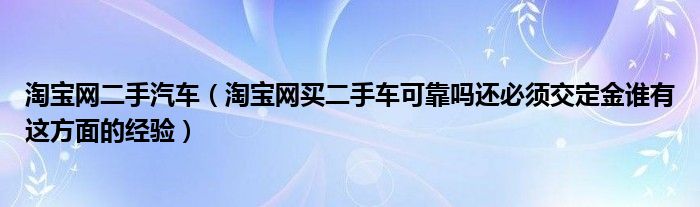 1,淘宝网买二手车可靠吗还必须交定金谁有这方面的经验 :你好!淘宝网是可信的,但不一定所有的信息都可信,象需要先缴定金的东西最好别信,怕被有恶意的人钻空子。仅供参考。