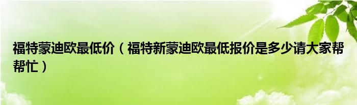 2,新款福特蒙迪欧多少钱蒙迪欧最低价格如何 :对于这款车来说,目前的整体优惠力度大概在3万元左右,具体可以咨询一下经销商。