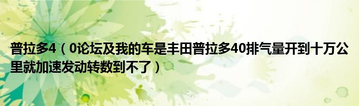 大家好,小常来为大家解答以下问题,对于普拉多4,0论坛及我的车是丰田普拉多40排气量开到十万公里就加速发动转数到不了很多人还不知道,今天让我们一起来看看吧!
