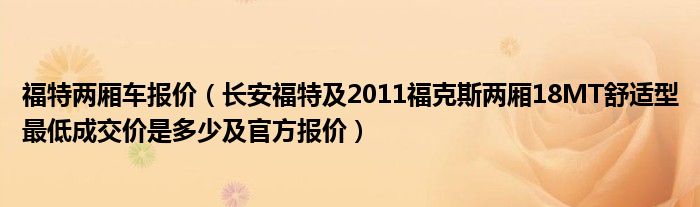大家好,小常来为大家解答以下问题,对于福特两厢车报价,长安福特及2011福克斯两厢18MT舒适型最低成交价是多少及官方报价很多人还不知道,今天让我们一起来看看吧!