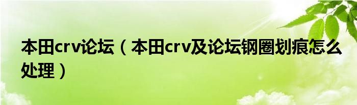 大家好,小常来为大家解答以下问题,对于本田crv论坛,本田crv及论坛钢圈划痕怎么处理很多人还不知道,今天让我们一起来看看吧!