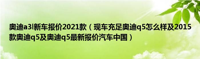 大家好,小常来为大家解答以下问题,对于奥迪a3l新车报价2021款,现车充足奥迪q5怎么样及2015款奥迪q5及奥迪q5最新报价汽车中国很多人还不知道,今天让我们一起来看看吧!