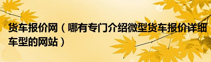 大家好,小常来为大家解答以下问题,对于货车报价网,哪有专门介绍微型货车报价详细车型的网站很多人还不知道,今天让我们一起来看看吧!