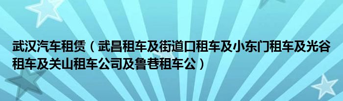 大家好,小常来为大家解答以下问题,对于武汉汽车租赁,武昌租车及街道口租车及小东门租车及光谷租车及关山租车公司及鲁巷租车公很多人还不知道,今天让我们一起来看看吧!