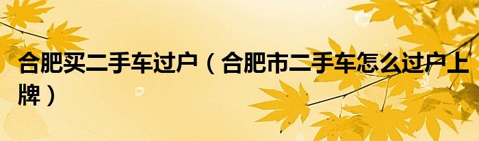 6,合肥车辆过户在哪里过 :在合肥二手车过户,要求买卖双方携带身份证(外地户口需携带暂住证),车辆行驶证、机动车登记证书等到车管所办理过户手续,缴纳费用,领取新的证件及牌照一、合肥二手车过户所需材料1.车辆行驶证2.机动车登记证书3.机动车登记副表(车辆所辖区车管所抽取,带身份证、行驶证、养路费证去抽取)4.车辆购置附加税证5.买卖双方身份证,如果是外地户口,需要携带暂住证。6.交易车辆到场二、合肥二手车过户流程1、签定车辆转让合同2、查实该车是否有抵押、法院封存等其他手续问题3、查验违章记录4、开具交易发票5、至车辆检测站查验车辆6、重新上牌领取行驶证7、办理附加税证变更手续8、办理养路费凭单变更手续9、如有保险费单则须办理转户手续