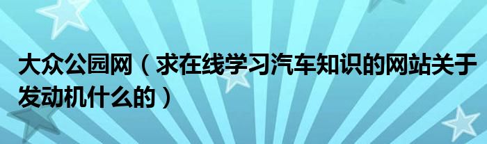 大家好,小常来为大家解答以下问题,对于大众公园网,求在线学习汽车知识的网站关于发动机什么的很多人还不知道,今天让我们一起来看看吧!