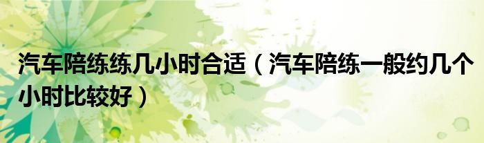 1,汽车陪练一般约几个小时比较好:一般都是两到三小时就可以了
