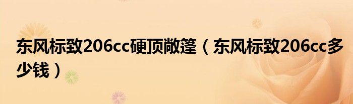 大家好,阳阳来为大家讲解下。东风标致206cc硬顶敞篷,东风标致206cc多少钱很多人还不知道,现在让我们一起来看看吧!
