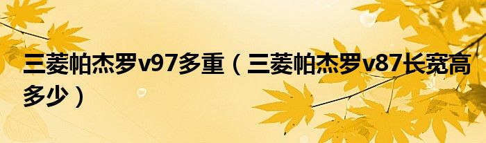 大家好,阳阳来为大家讲解下。三菱帕杰罗v97多重,三菱帕杰罗v87长宽高多少很多人还不知道,现在让我们一起来看看吧!