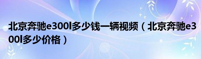大家好,阳阳来为大家讲解下。北京奔驰e300l多少钱一辆视频,北京奔驰e300l多少价格很多人还不知道,现在让我们一起来看看吧!