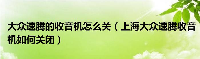 大家好,阳阳来为大家讲解下。大众速腾的收音机怎么关,上海大众速腾收音机如何关闭很多人还不知道,现在让我们一起来看看吧!
