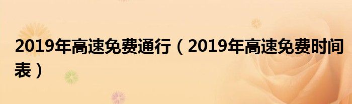 大家好,小美来为大家解答以上问题。2019年高速免费通行,2019年高速免费时间表很多人还不知道,现在让我们一起来看看吧!