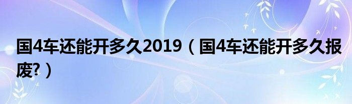 大家好,小美来为大家解答以上问题。国4车还能开多久2019,国4车还能开多久报废?很多人还不知道,现在让我们一起来看看吧!