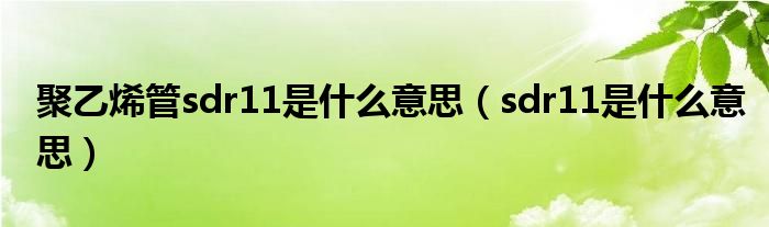 关于聚乙烯管sdr11是什么意思,sdr11是什么意思这个很多人还不知道,今天菲菲来为大家解答以上的问题,现在让我们一起来看看吧!