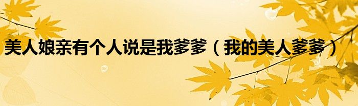 关于美人娘亲有个人说是我爹爹,我的美人爹爹这个很多人还不知道,今天菲菲来为大家解答以上的问题,现在让我们一起来看看吧!