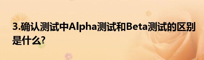 关于3.确认测试中Alpha测试和Beta测试的区别是什么?这个很多人还不知道,今天菲菲来为大家解答以上的问题,现在让我们一起来看看吧!