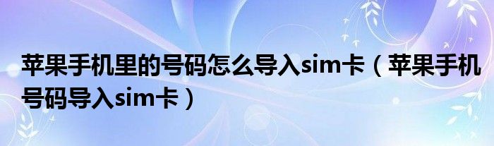 苹果手机里的号码怎么导入sim卡(苹果手机号码导入sim卡)