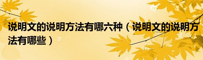 关于说明文的说明方法有哪六种,说明文的说明方法有哪些这个很多人还不知道,今天菲菲来为大家解答以上的问题,现在让我们一起来看看吧!