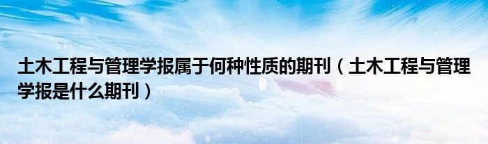 土木工程与管理学报属于何种性质的期刊(土木工程与管理学报是什么期刊)
