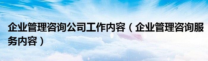关于企业管理咨询公司工作内容,企业管理咨询服务内容这个很多人还不知道,今天菲菲来为大家解答以上的问题,现在让我们一起来看看吧!