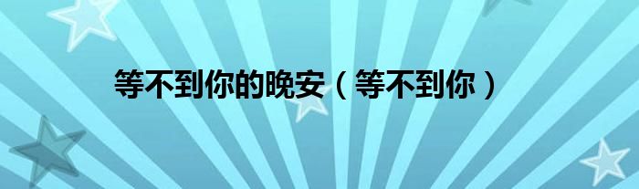 关于等不到你的晚安,等不到你这个很多人还不知道,今天菲菲来为大家解答以上的问题,现在让我们一起来看看吧!