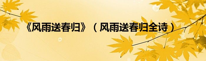 关于《风雨送春归》,风雨送春归全诗这个很多人还不知道,今天菲菲来为大家解答以上的问题,现在让我们一起来看看吧!