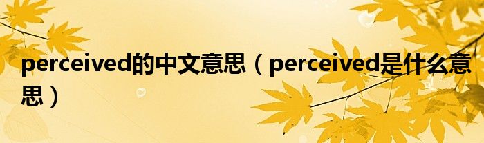 关于perceived的中文意思,perceived是什么意思这个很多人还不知道,今天菲菲来为大家解答以上的问题,现在让我们一起来看看吧!