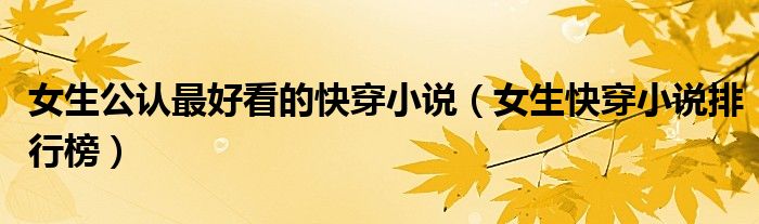 女生公认最好看的快穿小说(女生快穿小说排行榜)