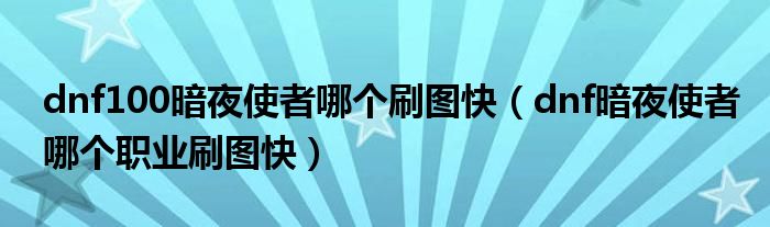 关于dnf100暗夜使者哪个刷图快,dnf暗夜使者哪个职业刷图快这个很多人还不知道,今天菲菲来为大家解答以上的问题,现在让我们一起来看看吧!