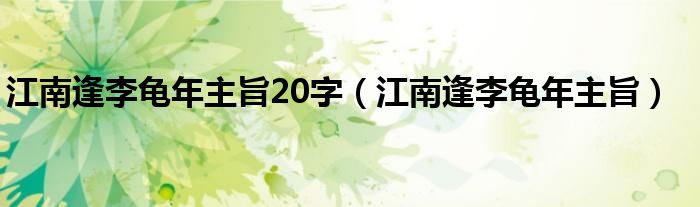 关于江南逢李龟年主旨20字,江南逢李龟年主旨这个很多人还不知道,今天菲菲来为大家解答以上的问题,现在让我们一起来看看吧!