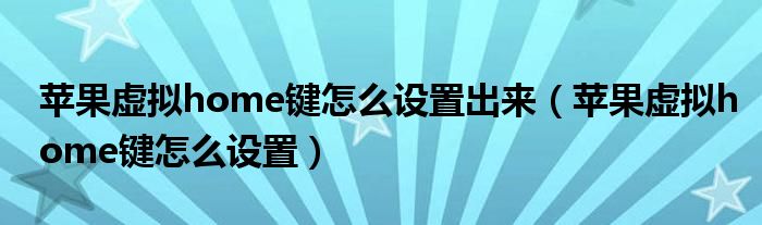 苹果虚拟home键怎么设置出来(苹果虚拟home键怎么设置)