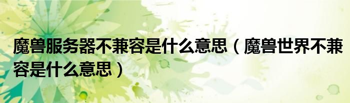 关于魔兽服务器不兼容是什么意思,魔兽世界不兼容是什么意思这个很多人还不知道,今天菲菲来为大家解答以上的问题,现在让我们一起来看看吧!
