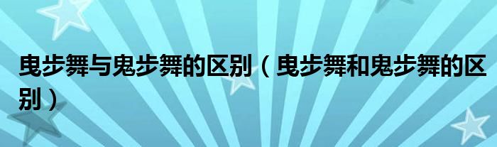 曳步舞与鬼步舞的区别(曳步舞和鬼步舞的区别)