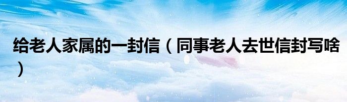 关于给老人家属的一封信,同事老人去世信封写啥这个很多人还不知道,今天菲菲来为大家解答以上的问题,现在让我们一起来看看吧!