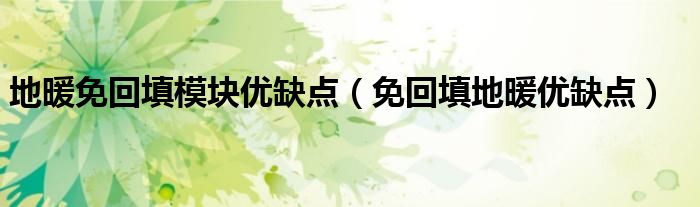 关于地暖免回填模块优缺点,免回填地暖优缺点这个很多人还不知道,今天菲菲来为大家解答以上的问题,现在让我们一起来看看吧!
