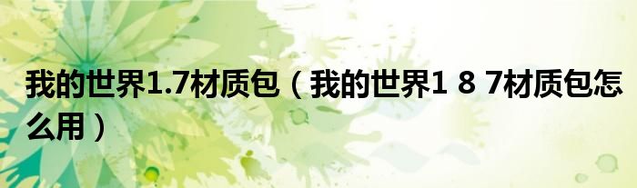 关于我的世界1.7材质包,我的世界1 8 7材质包怎么用这个很多人还不知道,今天菲菲来为大家解答以上的问题,现在让我们一起来看看吧!