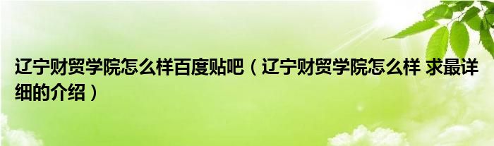 关于辽宁财贸学院怎么样百度贴吧,辽宁财贸学院怎么样 求最详细的介绍这个很多人还不知道,今天菲菲来为大家解答以上的问题,现在让我们一起来看看吧!