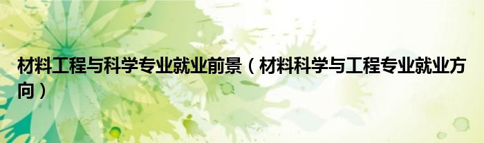 关于材料工程与科学专业就业前景,材料科学与工程专业就业方向这个很多人还不知道,今天菲菲来为大家解答以上的问题,现在让我们一起来看看吧!
