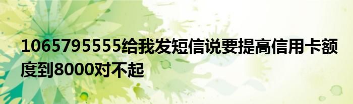 关于1065795555给我发短信说要提高信用卡额度到8000对不起这个很多人还不知道,今天菲菲来为大家解答以上的问题,现在让我们一起来看看吧!