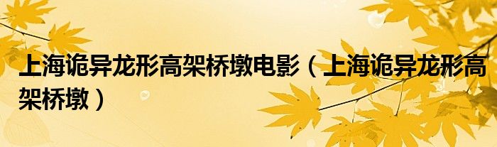 关于上海诡异龙形高架桥墩电影,上海诡异龙形高架桥墩这个很多人还不知道,今天菲菲来为大家解答以上的问题,现在让我们一起来看看吧!