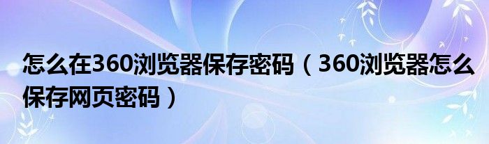 关于怎么在360浏览器保存密码,360浏览器怎么保存网页密码这个很多人还不知道,今天菲菲来为大家解答以上的问题,现在让我们一起来看看吧!