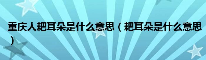 关于重庆人耙耳朵是什么意思,耙耳朵是什么意思这个很多人还不知道,今天菲菲来为大家解答以上的问题,现在让我们一起来看看吧!