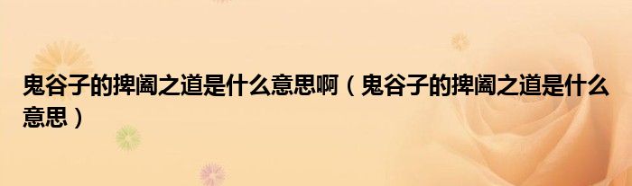关于鬼谷子的捭阖之道是什么意思啊,鬼谷子的捭阖之道是什么意思这个很多人还不知道,今天菲菲来为大家解答以上的问题,现在让我们一起来看看吧!